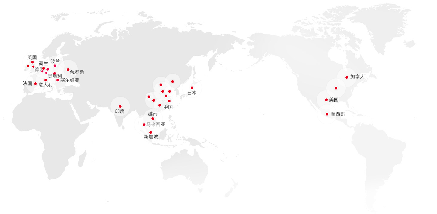 全球拥有3大制造基地,5大研发中心,42个工厂,销售及服务网络遍及全球100多个国家和地区